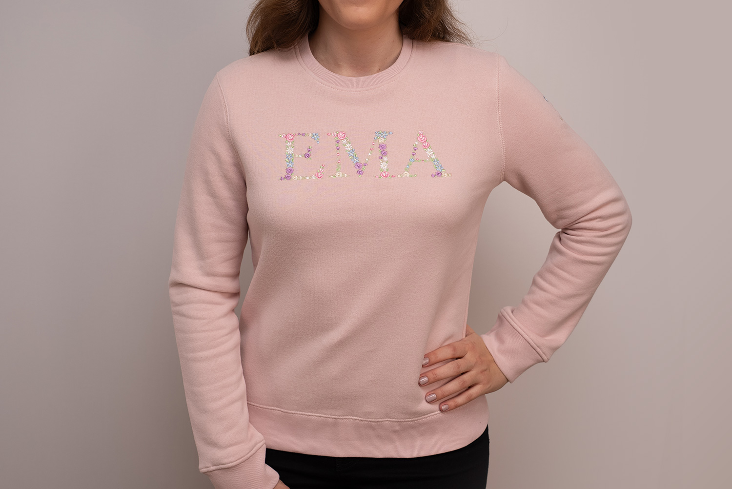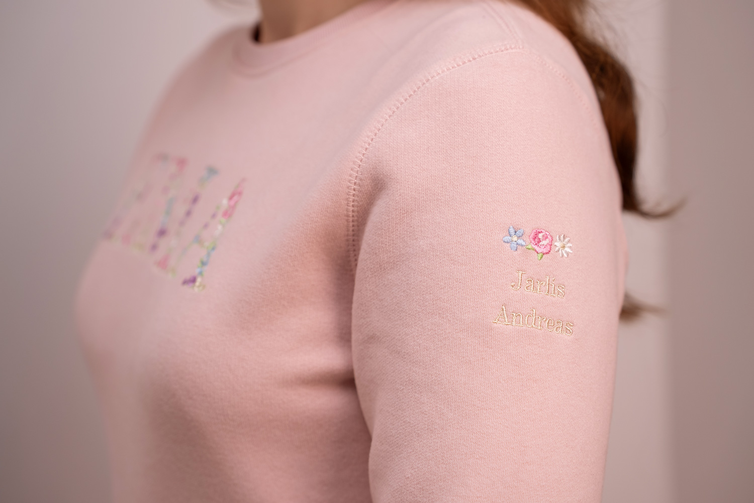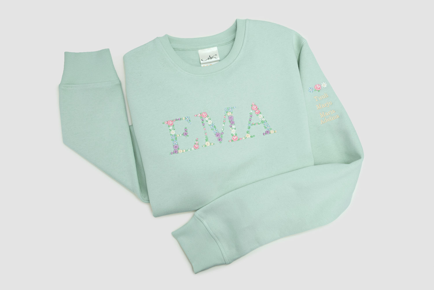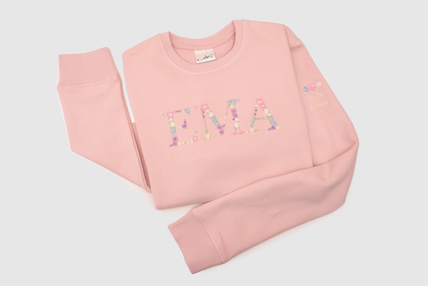 Õrn ja naiselik dressipluus lilledest moodustuva “EMA” tikandiga. Personaalsuse lisamiseks saame varrukale tikkida laste nimed, muutes iga pusa täiesti ainulaadseks. Sama nimede kombinatsiooniga pusa ei saa olla mitte kellelgi teisel! See on ideaalne kingitus emale emadepäevaks, sünnipäevaks või jõuludeks!