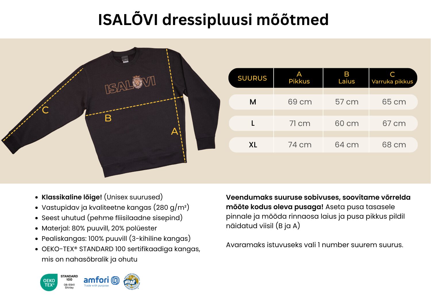 • Materjal: 80% puuvill, 20% polüester.