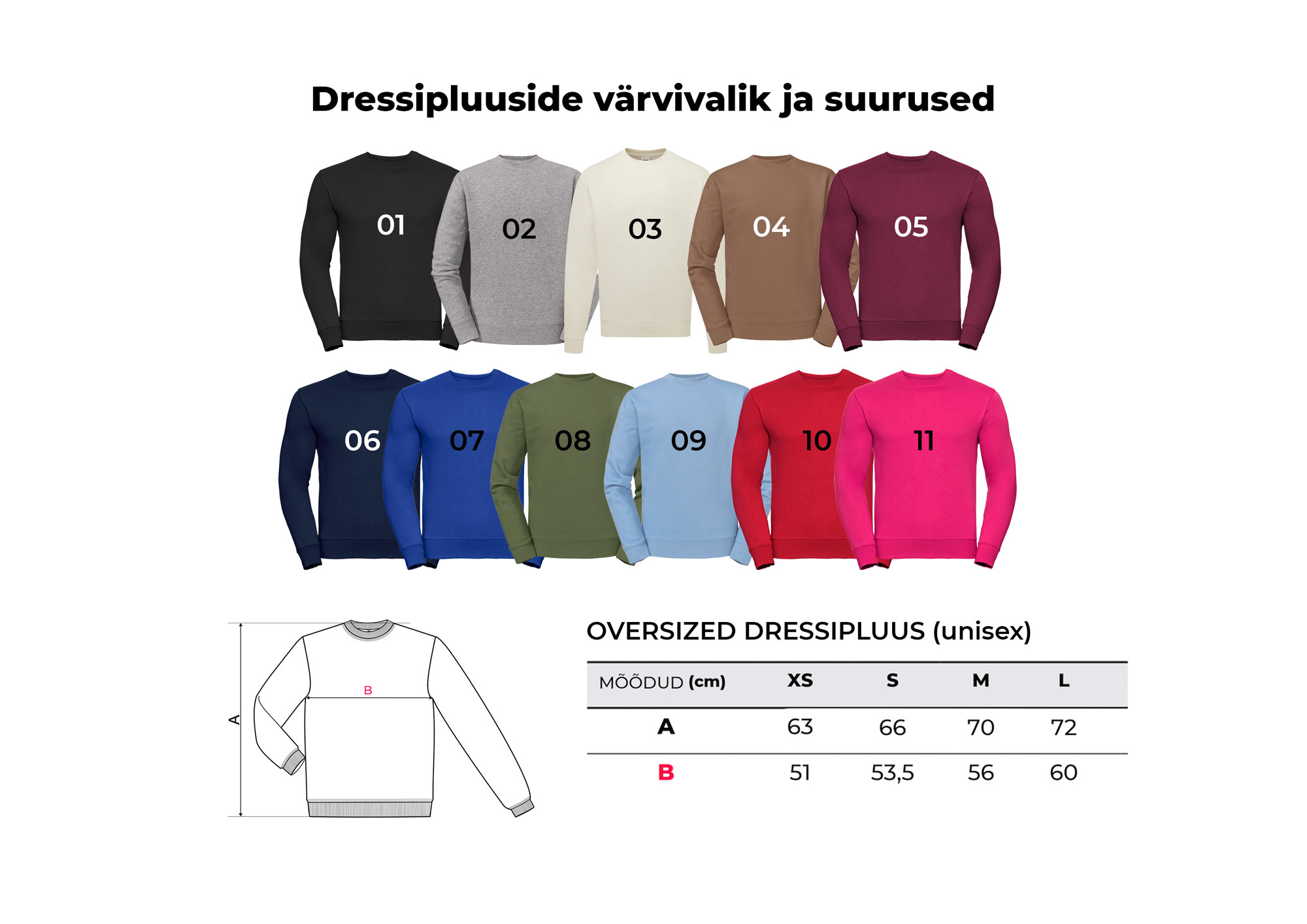 | Dressika värv | 01 Must, 02 Hall, 03 Beež, 04 Pruun, 05 Veinipunane, 06 Tumesinine, 07 Sinine, 08 Roheline, 09 Helesinine, 10 Punane, 11 Fuksia roosa |
