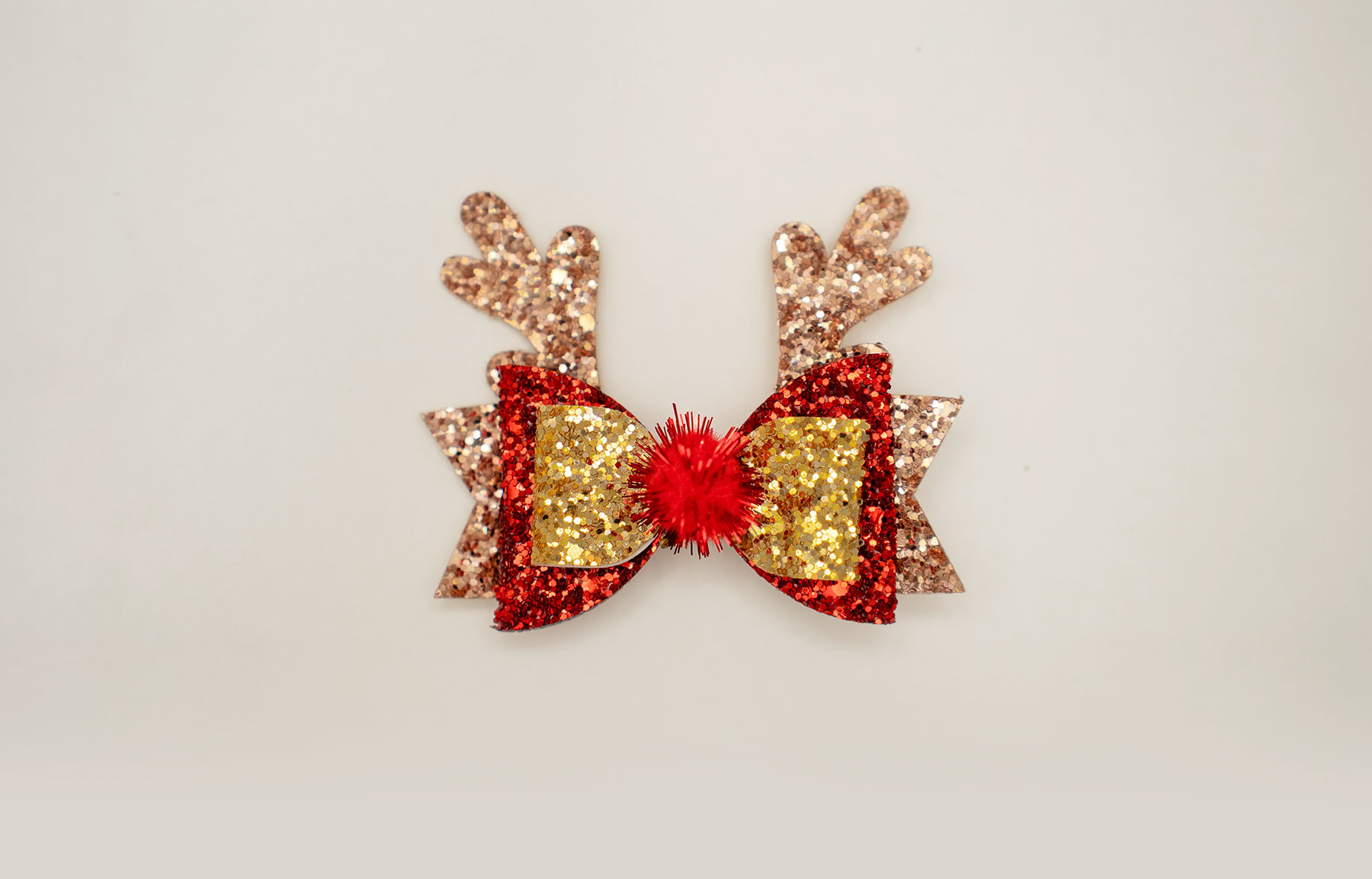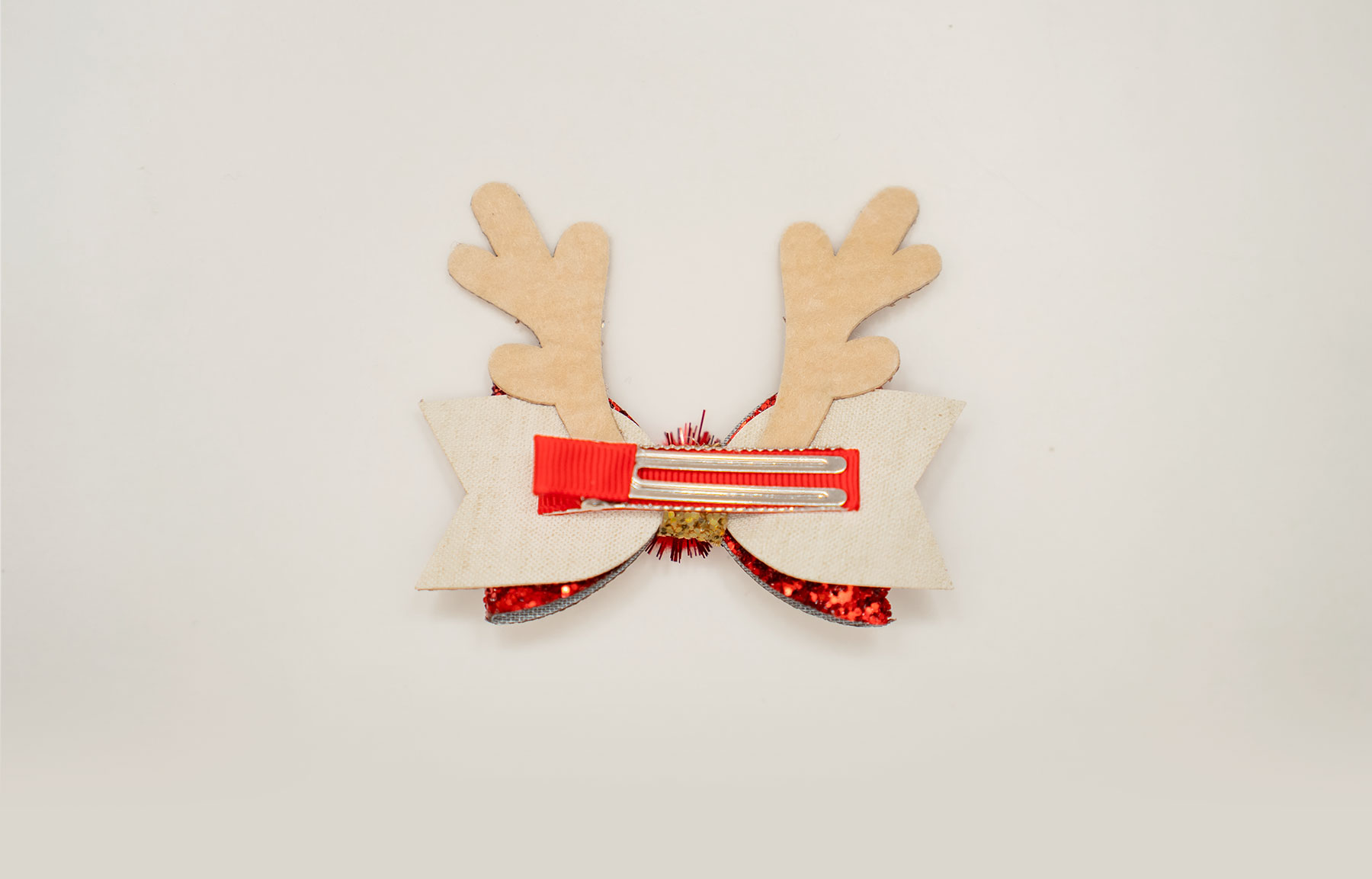 • Armas juukseklamber põhjapõdra sarvedega lipsuke on valmistatud sädelevatest punase ja kuldsete toonidega glitterkangastest, mis loovad rõõmsa ja piduliku jõuluilme.