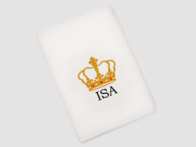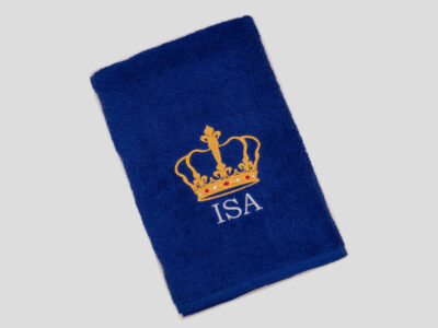 - Must põll polüestri/puuvilla segust kangast masintikitud sõnumiga “Köögi kuningas”.