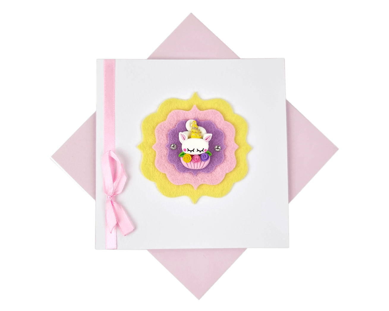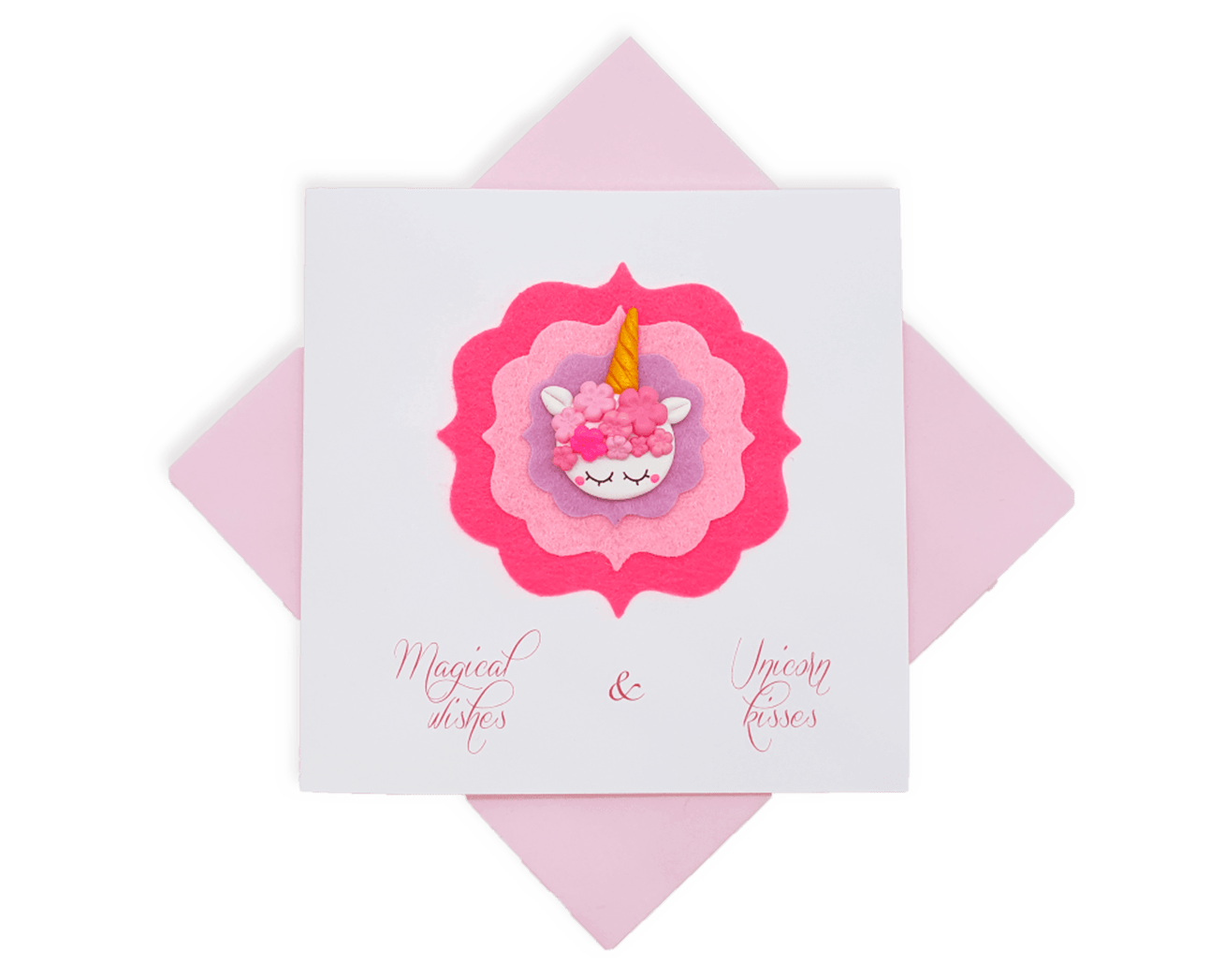 - Kaart on dekoreeritud swarovski kristallidega, käsitsi valmistatud savist kujuga ja vildist detailidega.