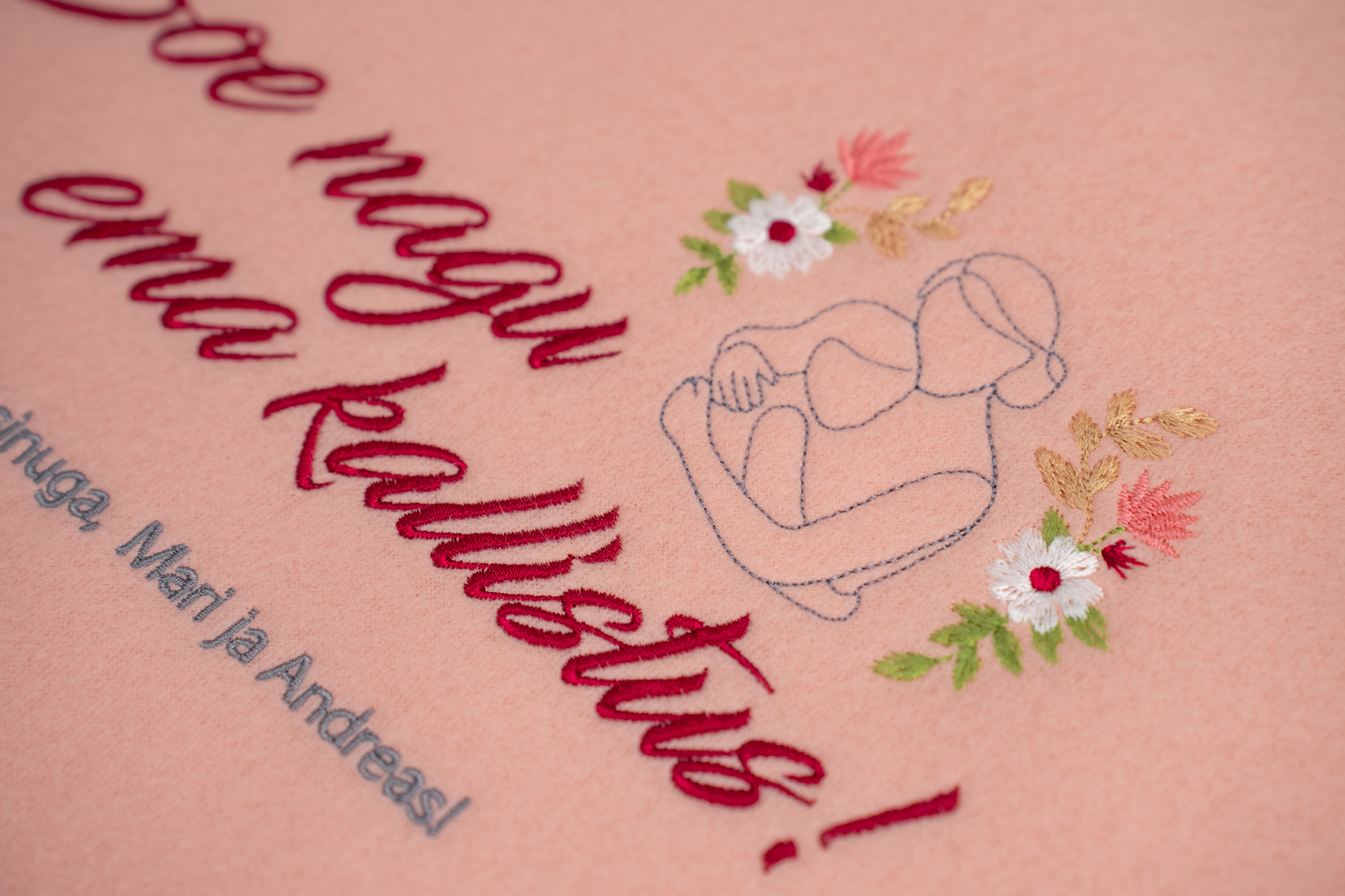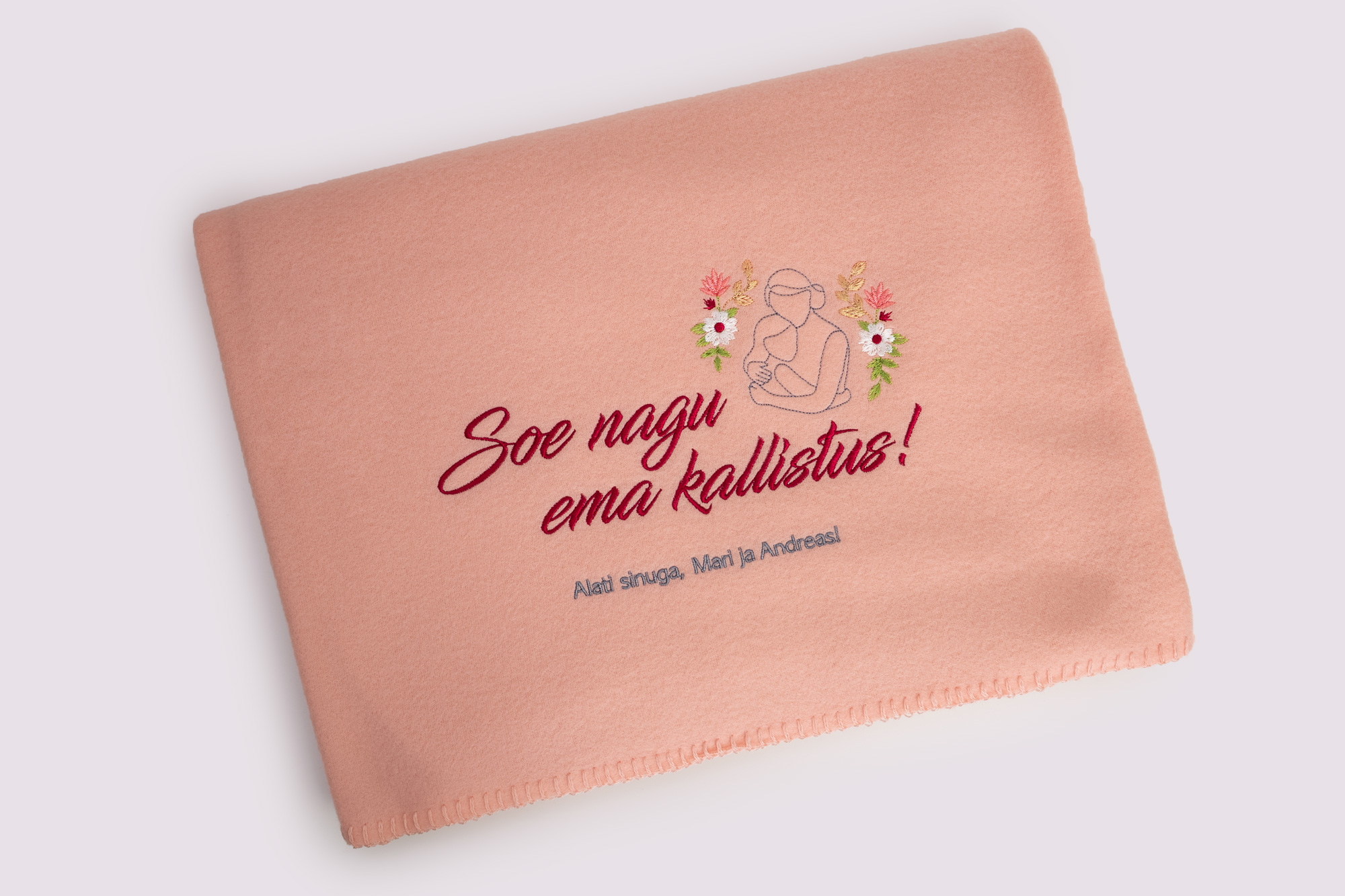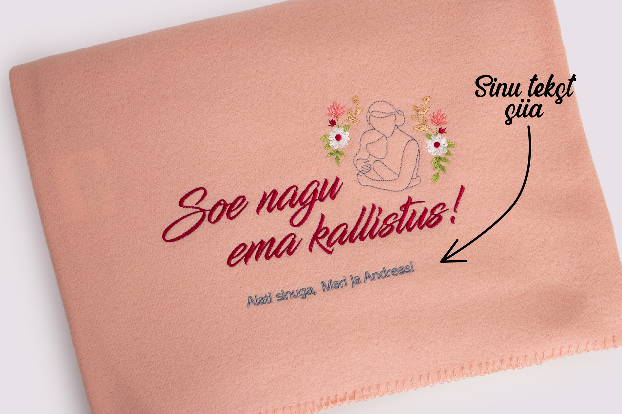 Tikandiga  pehme pleed “Soe nagu ema kallistus”. Suurepärane kingitus emale emadepäevaks või sünnipäevaks!