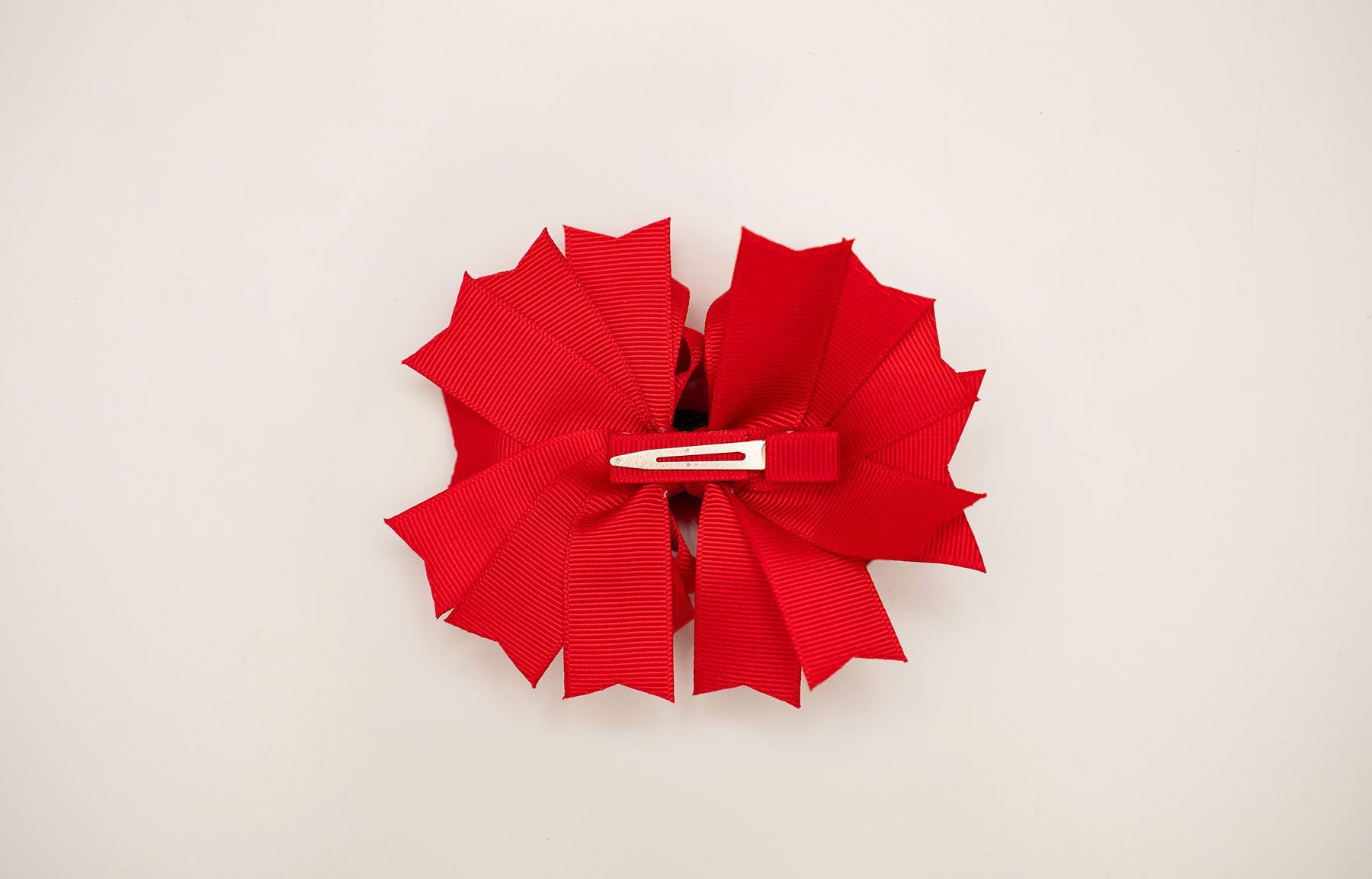 • Klamber on valmistatud kvaliteetsest punasest satiinpaelast, millel on erinevates suundades paigutatud voldid, andes sellele volüümi ja efektse välimuse. Taga metallkinnitus.